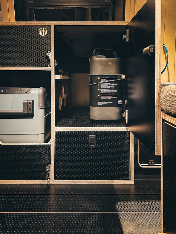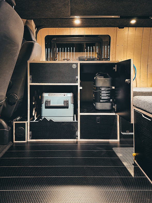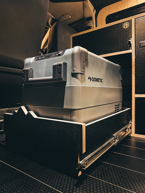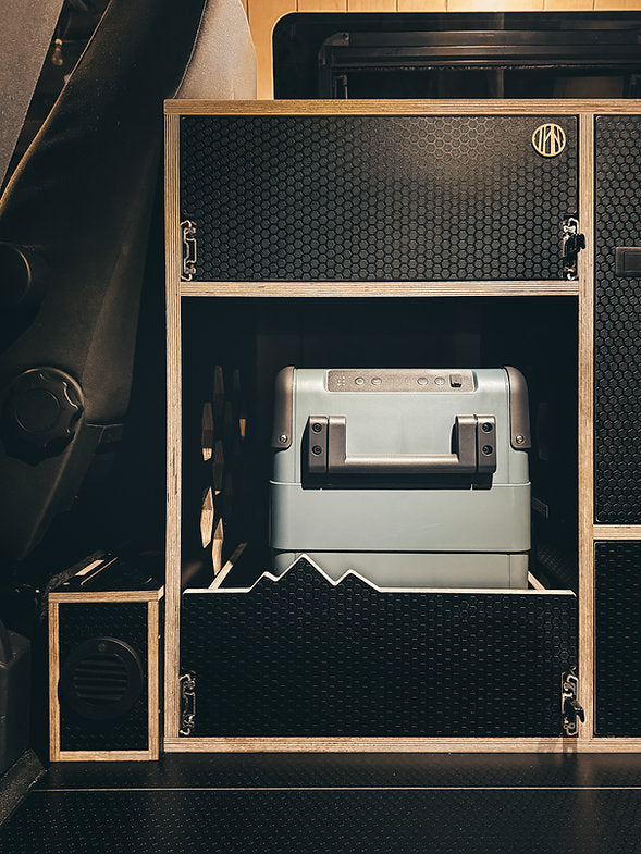 We’ve designed the lower tray to fit a number of different coolboxes and fridges. Our favourite - the Yeti Tundra 35 works great in the tray here but you can also fit the Tundra 45, Dometic CFX2 28, CFX3 35 and Dometic Recon 41. Alternatively, you can ditch the tray and fit a fixed fridge in this part of the unit, and is compatible with the Dometic NRX 50 or Alpicool 50L fridges.