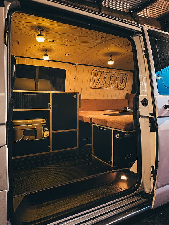 Why the Yeti? Well we've tried them all and it's perfect for long weekends, no power required and super handy to have around the van. The Yeti Tundra 35 can be removed from the drawer and placed elsewhere in the van as additional seating when paired with one of our custom seat cushions and is the same height as our Torridon, Clachan and Cuillin van beds.