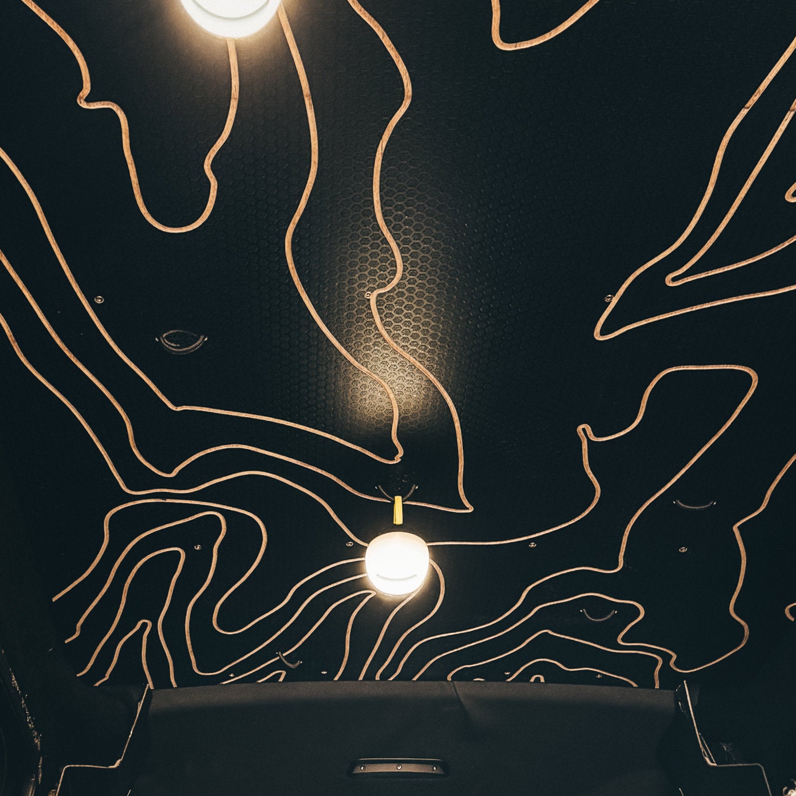 Suas makes your van roof interesting...fed up with looking a carpet lining or fuzzy felt (remember that stuff!?) then this is for you. It's made from 6mm Natural Birch, engraved with a relief map of the Torridon Mountain range in Scotland, lovely!