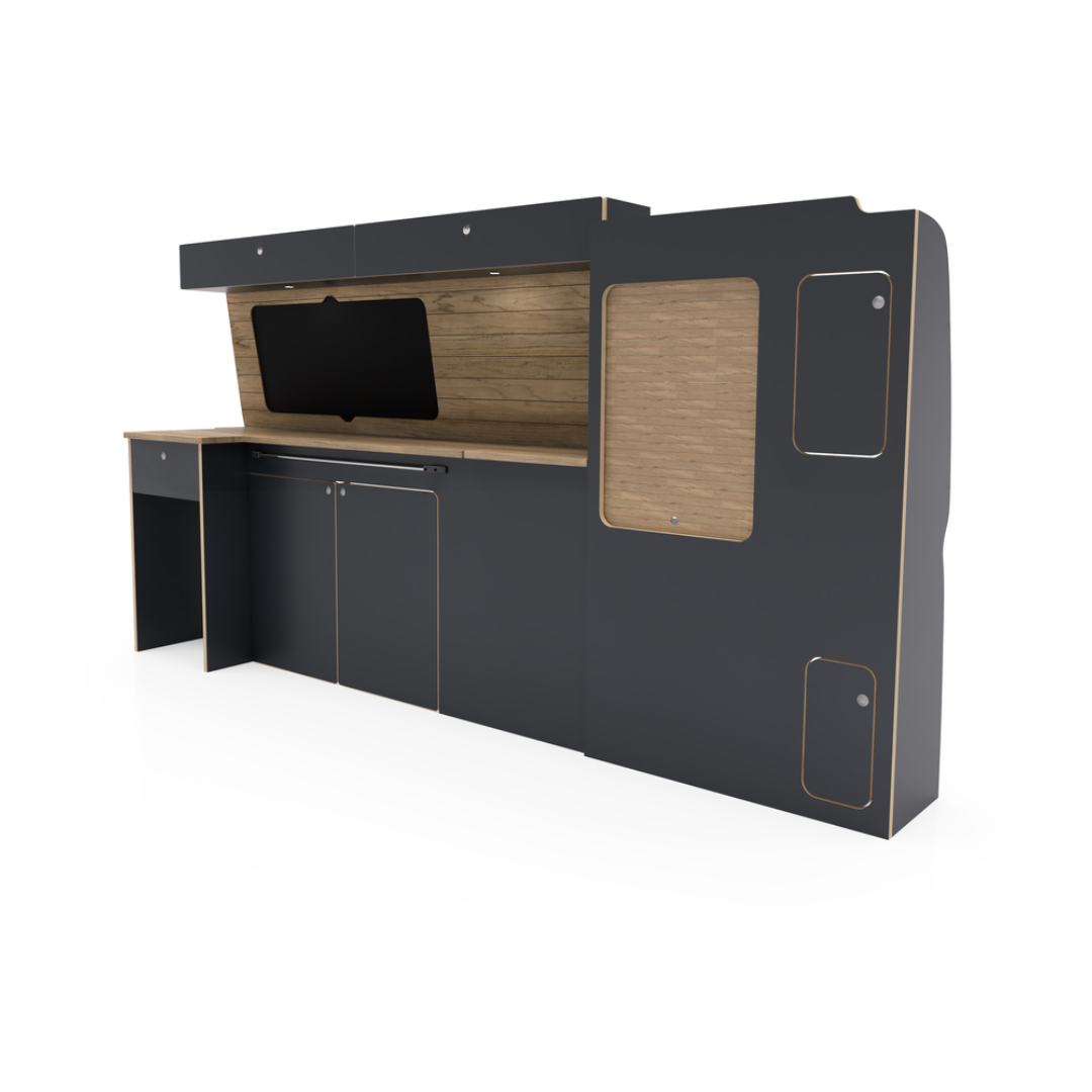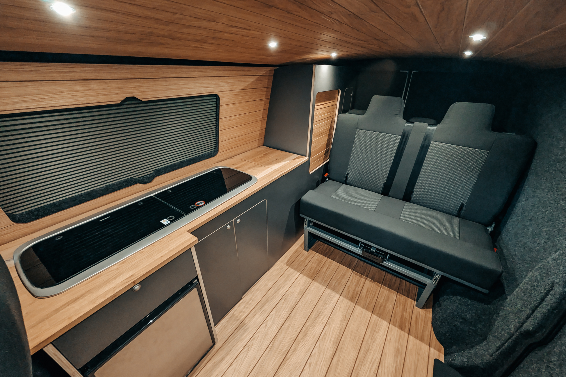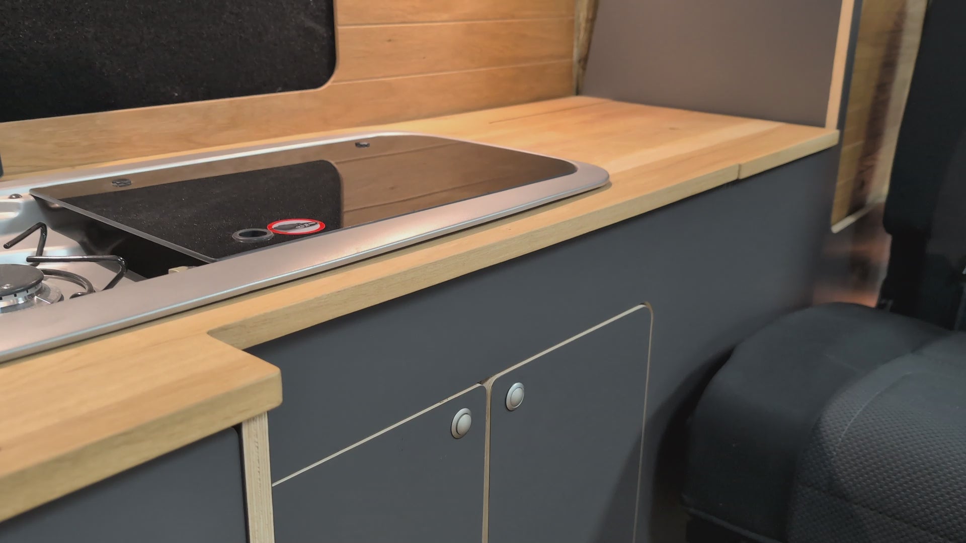 The Stunning Van furniture campervan kitchen units give your camper a modern and contemporary look with live ply edges.